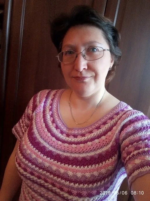 Огромное спасибо девочкам из СтраныМам! Прочитала все комментарии (76 страниц), посмотрела все работы, изучила схему (она оказалась очень проста), все нюансы и проблемы, возникающие при вязании.. По-моему получилось. Во всяком случае мне очень нравится!