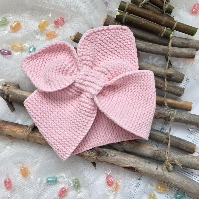 Прибавки делаем до тех пор, пока ширина повязки не достигнет желаемой. В моём случае это 20 петель (далее расчёты даны именно на это значение).Провязываем без прибавлений ещё 19 рядов (от этой величины зависит размер бантика).Вводим в работу дополнительную спицу: все нечётные петли переснимаем на рабочую спицу (1,3,5,7,9,11,13,15,17,19); все чётные-на дополнительную (2,4,6,8,10,12,14,16,18,20). 10 петель на одной спице, 10 петель на другой спице.Вязание продолжаем на рабочей спице:1-ый ряд: первую кромочную снимаем, восемь петель-лицевыми, кромочную-изнаночной. Провязываем так с 1-го по 12 ряд включительно. Переснимаем на 2-ую вспомогательную.Переходим к вспомогательной спице. Вводим в работу дополнительную нить (я советую вязать из центра мотка).1-ый ряд: первую петлю провязываем лицевой, восемь лицевых, последняя-изнаночная. Далее первую кромочную снимаем, восемь лицевых, последняя-изнаночная.