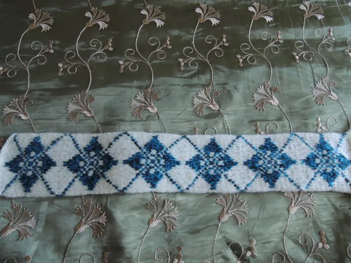 Интересная очень получилась повязка! И жаккард такой ровненький и на белом сочетание синего, голубого и чёрного смотрится красиво! Прям, как гжель!