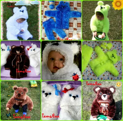 Очень нравятся детские изделия из травки, В них малыши смотрятся как плюшевые игрушки ,всегда вызывают море улыбок и радость,