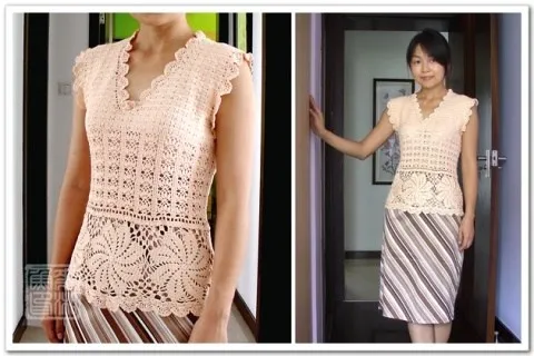 Бежевый ажурный топ