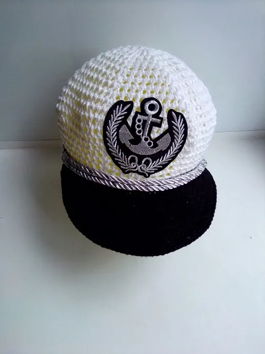 Добрый день! Поздравляю всех с первым днем лета! Сегодня День защиты, и в подарок внуку связалась вот такая кепка моряка. Вязала из остатков, поэтому название пряжи не могу сказать. Вязала вот по этому МК https://www.youtube.com/watch?v=ZdJ9JC6_eJI. Козырек вязала тоже по этому МК, но сделала его двойным. На изнаночной стороне кепки пришила. Ниточки были тонкие вязала в две нити крючком №2.Аппликация приклеилась неудачно, думаю при носке будет незаметно.