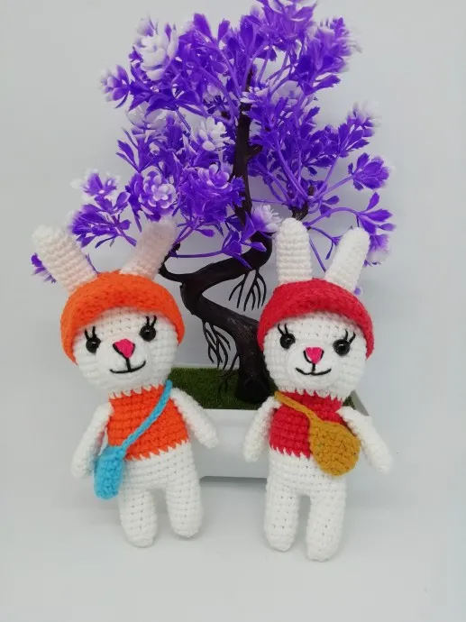 Два кролика связались у меня за выходные. Рост 14 см. Кепки снимаются