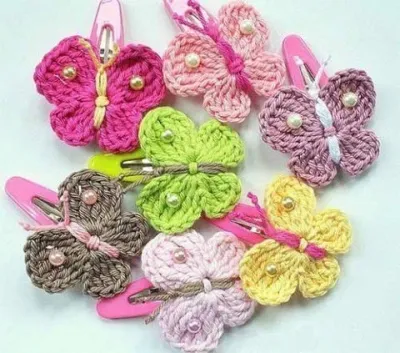 Идея для необычной заколочки с вязаными фрагментами