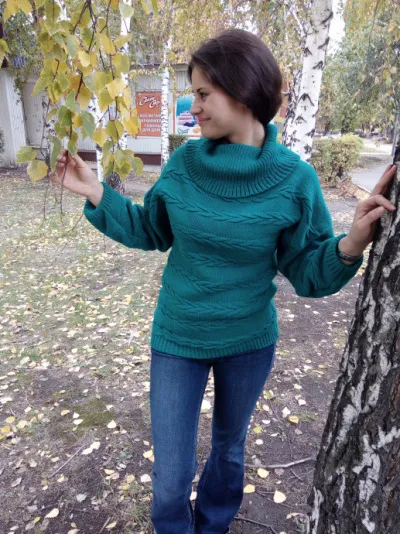 Свитер связан из полушерстяной, очень мягкой и приятной на ощупь пряжи. Изделие украшают поперечные косы, расположенные по всему пуловеру. Воротник связан эластичной резинкой и можно носить в разных положениях. В таком свитере чувствуешь себя легко и непринужденно. Приобрести такое изделие можно здесь: https://www.livemaster.ru/item/23264603-odezhda-sviter-zhenskij