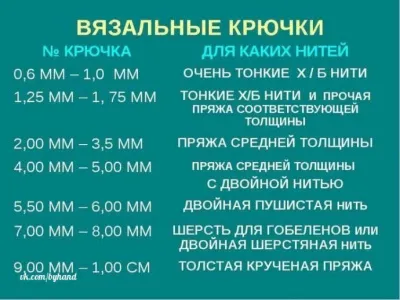 Полезная информация для всех, кто вяжет крючком. Сочетание номера крючка и типа пряжи, которая должна для него применяться.