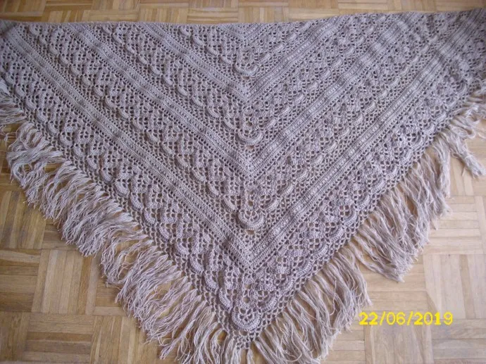 Раньше вязала насколько нити хватит , а тут решила , что обязательно шаль будет с кистями .