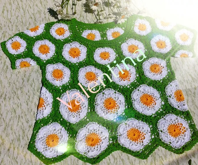 Ромашки просто глаз не оторвать! Кофточка получилась такая позитивная! Замечательная, мастерская работа!