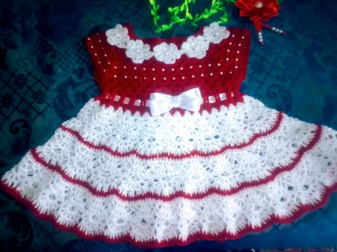 Детское ажурное платьице на 3 годика связано крючком из пряжи ANGORA GOLD.