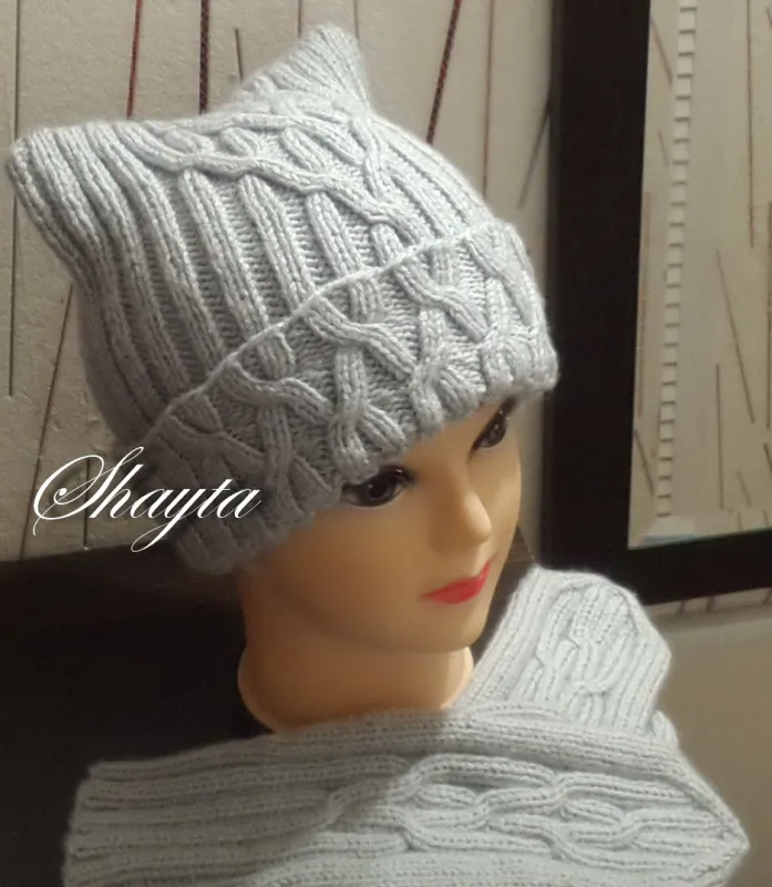 Всем здравствуйте! Этот комплект связан из пряжи Ализе Суперлана Классик 280м – 100гр(75%-акрил,25%-шерсть) в 2 нити, спицами №3, для узора необходимы дополнительные 2 спицы. На весь комплект ушло 230гр. На шапку набирала 120п., далее вяжем по схеме №2 (для отворота), после переходим к выполнению основного узора по схеме №1. Вязала вкруговую, за 6 рядов до закрытия в каждой изнаночной полосе убавила одну петлю. Закрывала методом 3-х спиц.