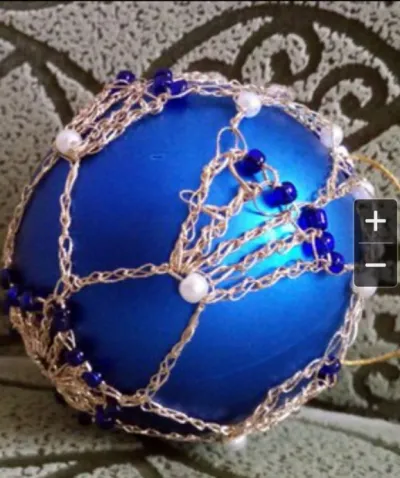 Первый опыт декорирования новогодних шаров. Испоьзовала нитки для вышевания и вязания с люрексом. Схем определенных не было, фантазировала. Научилась ввязывать бисер.