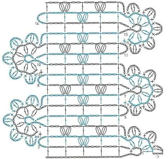24 в.п.потом ст.без накида присоединяетесь в 5 петлю цепочки и опять считаете сколько п етель вам вязать по этой цепочке Вот так.с крючком шаг за шагом осваивается узор и тогда вам там сразу будет видно как и что вязать