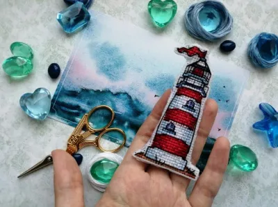 В наборе для вышивки идет 4 магнита: корабль, маяк, компас, якорь. То есть у нас получится целая морская коллекция!