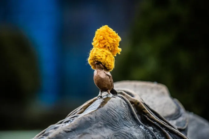 В Белоруссии появились желтые шарфы и шапки. Скульптуры утеплил к зиме оператор сотовой связи. Как оказалось, именно эти головные уборы вязали вчера «штурмовик» в минском метро, светская львица Анна Бонд в витрине ГУМа, «космонавт» на остановке общественного транспорта и бабушки в аквапарке и отеле «Европа».