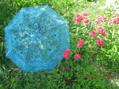 На основе салфетки связала свой первый зонтик. Оказалось, что это тоже очень интересно и увлекательно. Сейчас вяжу третий.