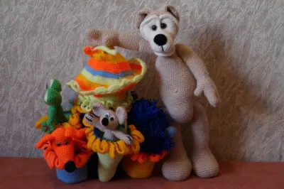 Опять таки игрушки были вязаны, как дидактический материал для развития речи. Нам очень помогло) Теремок с кармашками для всех героев и большим медведем вообще зашел на ура)