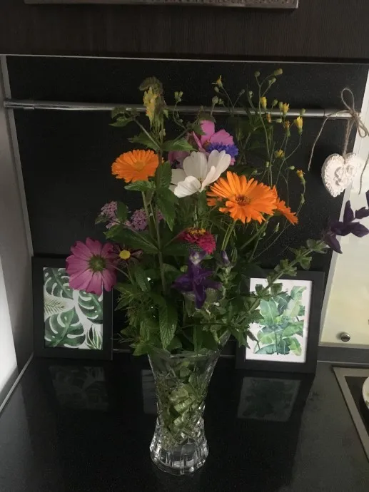 Давайте посмотрим.что тут за цветочки?? Циннию вижу, календулу.дельфиниум.разноцветки.где то спрятался василёк.а впереди справа-забылаааааааа.А у меня их полно