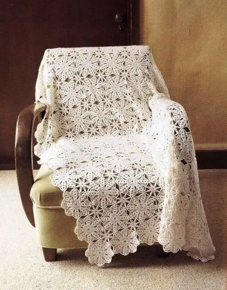 Ажурный мотив, напоминающий снежинку. Подойдет для пледика!