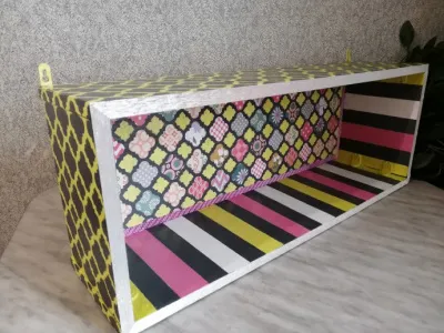 Совет. Я не знаю, чем Вы обклеили свою переделку, но ее можно покрыть акриловым лаком: облегчит поддержание чистоты и повысит прочность обклеечных материалов.