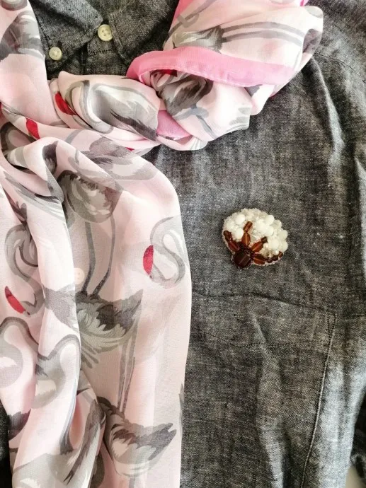 Я очень люблю броши, а если это ручная работа, то просто отлично. Уверена, что такая брошь не оставит модницу равнодушной. Оригинальная вещь, браво!