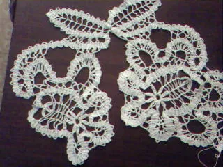 Салфетка "Гжель", брюггское кружево,нитки катушечные,с блошиного рынка,крючок0,9