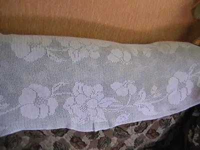 Вязала дорожку на комод по мотивам покрывала из журнала.Нитки похоже,снежинка,крючок 1,25.