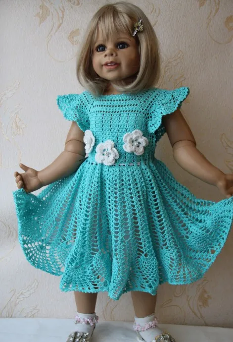 Вот такое замечательное платье связалось этим летом. Платье связано крючком № 2. Ниточки состава мерсеризованный хлопок сосо. Наряд демонстрирует моя кукла Сара. Размер платьица на девочку 2 - 3 лет.
