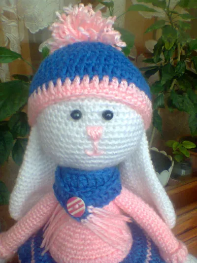 Зайка связана из акрила Пехорка Детская новинка, крючок №3.