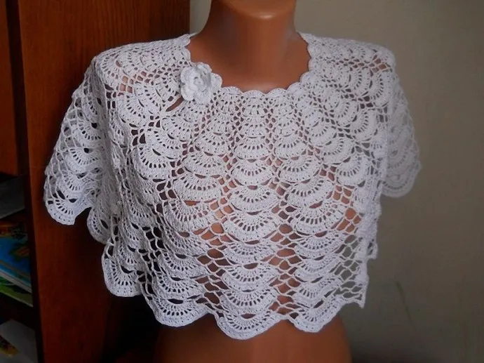 Через пятнадцать круговых рядов от наборного края закончите работу. Чтобы украсить готовую пелерину, придав ей ещё большей изысканности и утончённости, приколите к ней декоративный вязаный цветок.Ну вот, пелерина готова. Она эффектно освежит ваш образ и придаст изюминку вашему стилю. Стоит подметить, что изделия, связанные крючком, не деформируются. Поэтому ваша обновка будет служить вам верой и правдой достаточно долго, радуя вас каждый день.