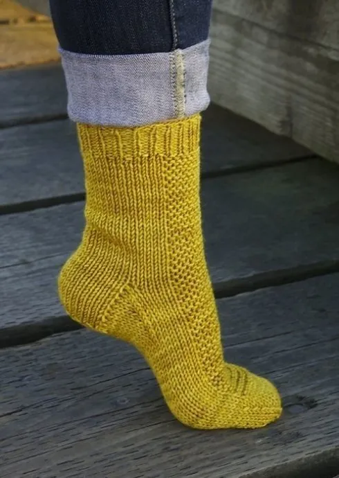 Пятка: провязать 14 (16, 18, 20, 22, 24) лиц.п. и отложить эти петли на дополнительную спицу, а пятку вязать над последними 14 (16, 18, 20, 22, 24) петлями.1-й ряд (лиц. сторона): снять петлю, вязать лицевыми, повернуть работу.2-й ряд (изн. сторона): снять петлю, вязать изнаночными, повернуть работу.Повторять 1-2 ряды всего 6 (7, 8, 9, 10, 11) раз – провязано 12 (14, 16, 18, 20, 22) ряда пятки.Далее начать выполнять короткие ряды:1-й ряд (лиц. сторона: снять петлю, 6 (8, 10, 12, 12, 14) лиц., 2 вместе лиц. влево, 1 лиц., повернуть работу.2-й ряд (изн. сторона): снять петлю, 1 (3, 5, 7, 5, 7) изн., 2 вместе изн., 1 изн., повернуть работу.3-й ряд: снять петлю, вязать лицевыми до 1 петлю перед предыдущем поворотом, 2 вместе лиц. влево, 1 лиц., повернуть работу.4-й ряд: снять петлю, вязать изнаночными до 1 петлю перед предыдущем поворотом, 2 вместе изн., 1 изн., повернуть работу.Повторять 3-4 ряды, пока для петель пятки не останется всего 8 (10, 12, 14, 14, 16) петель.