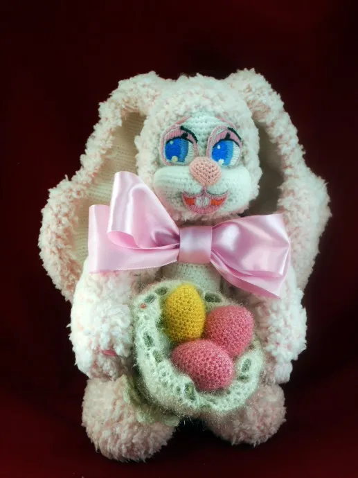 Какая прелесть! Как красиво вышиты глазки! Зайка — сама доброта и нежность, достойное украшение пасхального стола!