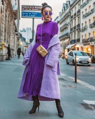 Палитра фиолетового кажется не самой практичной и даже смелой, но не стоит сбрасывать ее со счетов: она смотрится эффектно и омолаживает. Аксессуары в сиренево-фиолетовом образе могут быть как контрастными (для тех, кто не боится ярких решений), так и абсолютно нейтральными: бежевыми, серыми, белыми. Также можно создавать ансамбли фиолетового с зеленым, желтым, красным, бирюзовым и оранжевым (важно учитывать, что яркие блоки акцентируют внимание на лишних сантиметрах).