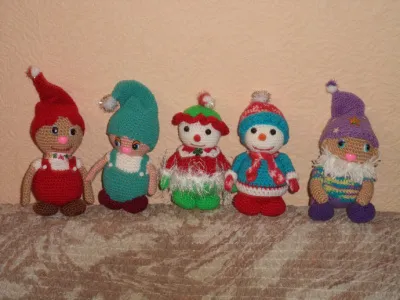 Связаны из ниток "Суфле", крючок № 2. Высота - 10 см. Можно повесить на елку как игрушки.