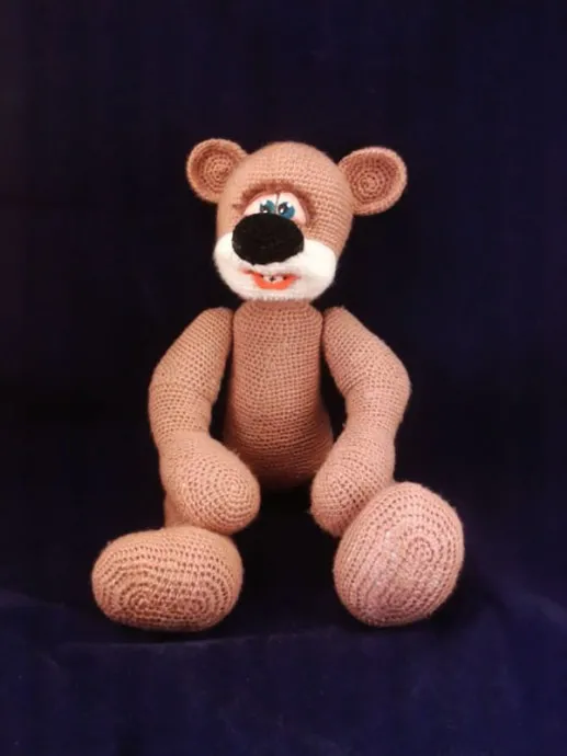 Рост 50см. Лапы на болтах. девочки вязали у меня со шплинтами, сказали, что болт лучше держит большую деталь.