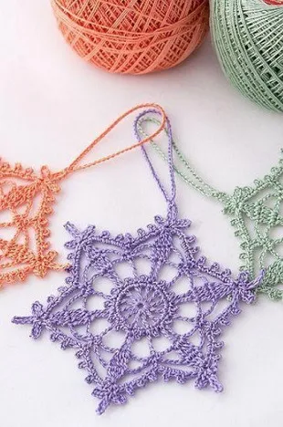 Связанными крючком снежинками можно украсить скромную гостью праздника - новогоднюю елочку. Или соединив между собой отдельные снежинки сделать гирлянду, которой можно украсить комнату. Далее - схемы вязания снежинок крючком.