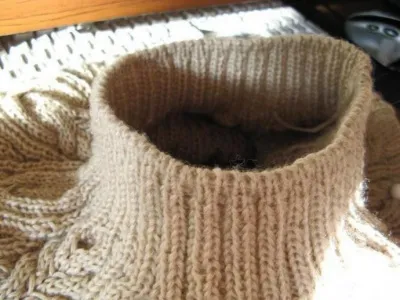 8.После 7 ряда можно пересаживать вязание на чулочные спицы и вязать полотно по кругу (манжеты, горловину, низ изделия).