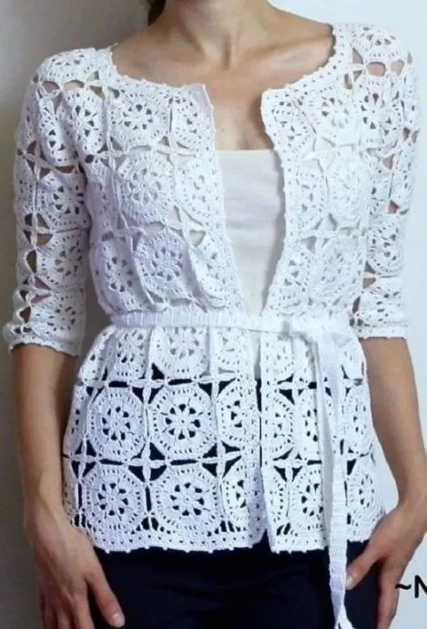 Стильный жакет, связанный из мотивов
