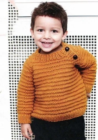 Теплый свитер спицами для мальчика на возраст 1 (2) 3 (4) годика. Модель вяжется на круговых спицах.