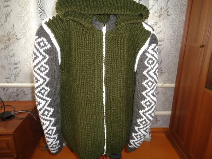 Здравствуйте, мастерицы! Связала мужу авторскую модель – мужскую куртку-жакет на молнии “Shayta”, из пряжи Пехорка Мериносовая, полушерсть, 54р-р. Пряжи ушло примерно 12 мотков, круговые спицы №3 ,ч...