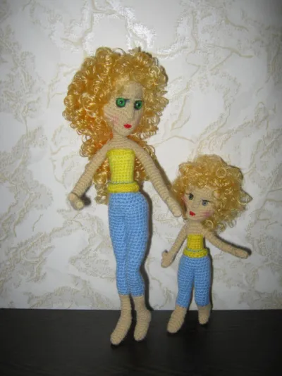 27см мама 13см дочка, и ещё хочу маме глазки переделать по спокойнее найти цвет или так оставить?