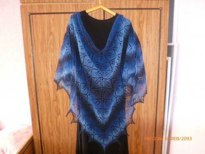 Синяя шаль просто влюбляет в себя с первого взгляда, шикарно смотрится!