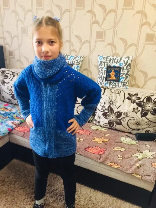 Внучка очень довольна , ей тепло и уютно в новом кардиган.