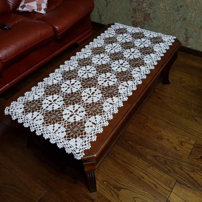 Вот такая мини-скатерть получилась из остатков. Ее размер 122×55 см