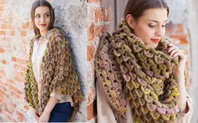 Шаль получается очень плотной. Если кто будет вязать — необходимо учитывать тот факт, что «чешуйки» кушают очень много пряжи (из опыта)