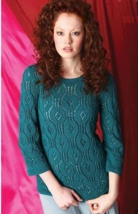 Рапорт узора 23 петли и 36 рядов. На схеме показаны только лицевые ряды. С изнаночной стороны вязать по рисунку, накиды изнаночными. Начинать вязание нужно с петель перед рапортом, затем повторить нужное количество рапортов и закончить петлями после рапорта (см. первую схему)