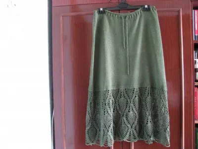 Пряжа семеновская Нежность цвет- олива. Низ обвязан крючком.