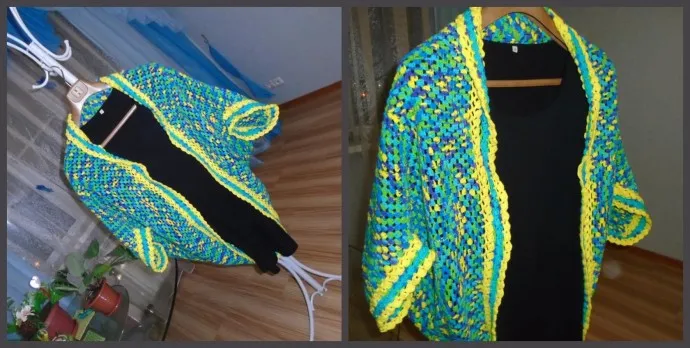 Ещё один кардиган - накидка крючком.