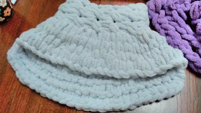 Круто, лежит плюшевая пряжа думаю тоже шапку из нее связать, но не решалась, а теперь точно свяжу