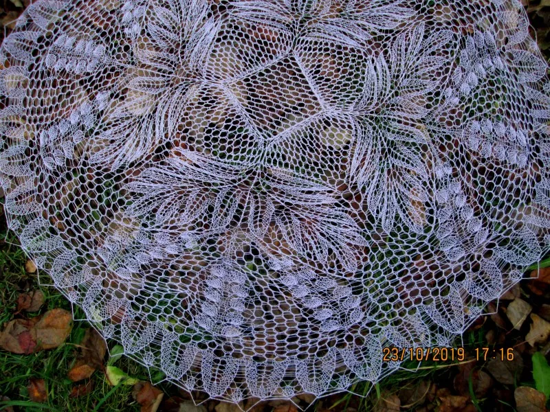 100% котон . Цвет нежно-абрикосовый .Камера немного искажает цвет .Размер 40×40 . Довольно большая получилась и очень интересная !