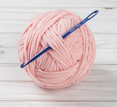 Для вязания понадобится: специальный крючок с игольным ушком, пряжа и нейлоновая нить-основа.